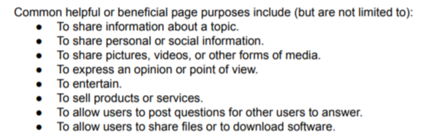 Mentioning the ‘beneficial purpose’ again in section 3.2, the SQEG states that it is the first step in evaluating a page’s quality. Google mentions, “Remember that the first step of PQ rating is to understand the true purpose of the page.”