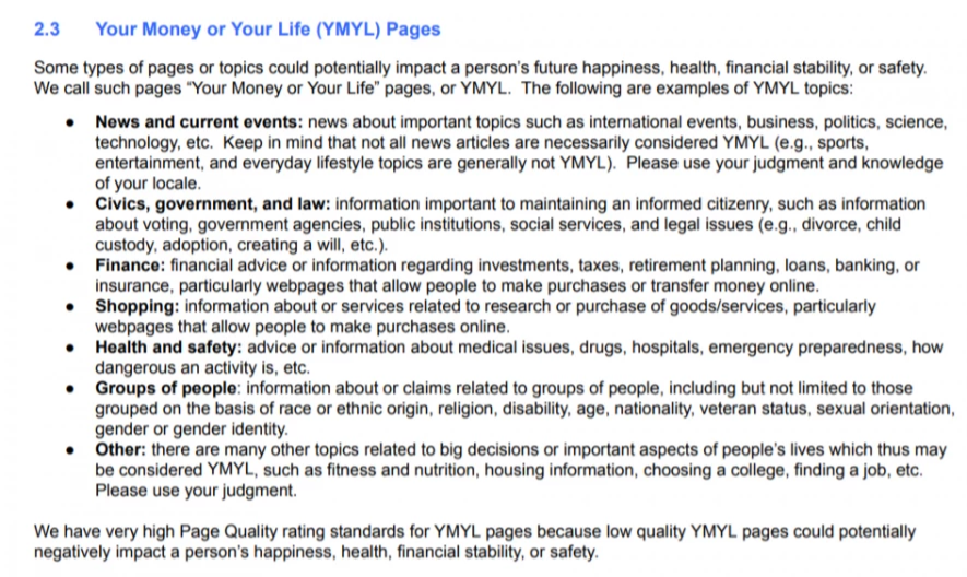 Google is particularly sensitive about YMYL niche because if presented with untruthful, deceptive or misinformation, this could directly impact a reader’s health, happiness, financial stability or safety. Google has to be accountable for such content even though it is not legally obliged to.
